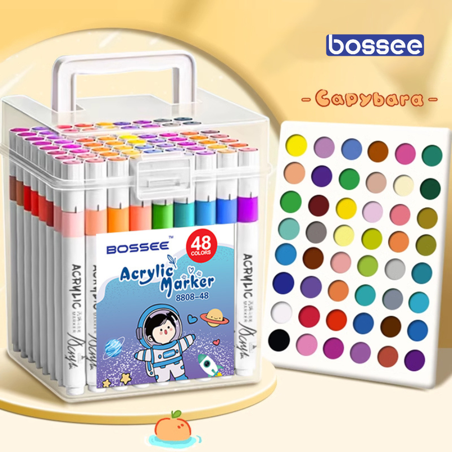 Bộ 12/24/36/48/60/80 Màu Maker, Bút Màu Acrylic Marker Ngòi Mềm Không Lem – Bút Màu Vẽ Không Thấm Qua Mặt Sau, Màu Tươi Sáng, Dùng Trên Nhiều Chất Liệu, Hộp Đựng Trong Suốt Tiện Lợi, Bút Tô Vẽ DIY An Toàn Cho Bé