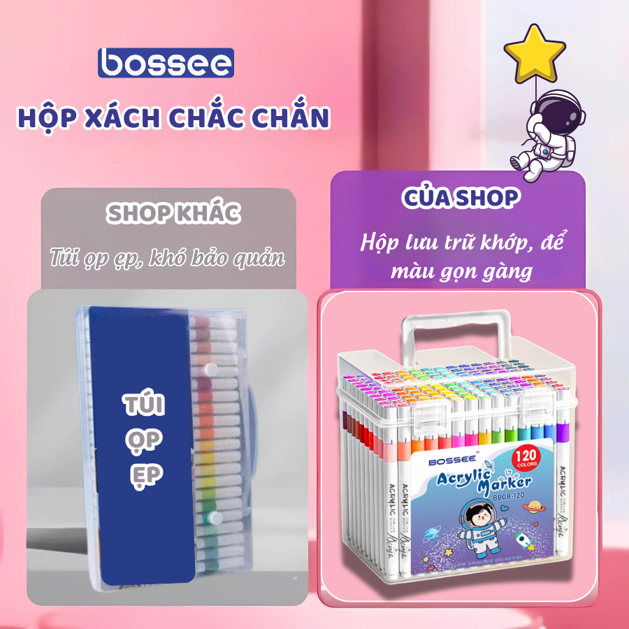 Bộ 12/24/36/48/60/80 Màu Maker, Bút Màu Acrylic Marker Ngòi Mềm Không Lem