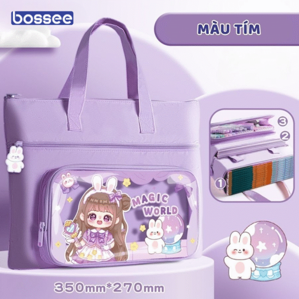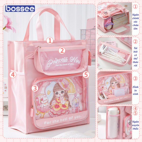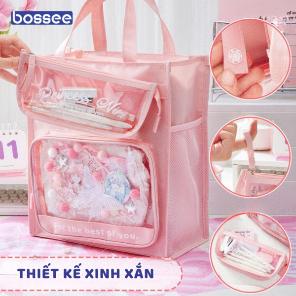 Kích thước: Được thiết kế phù hợp với sách vở, tài liệu học tập và nhiều vật dụng khác.