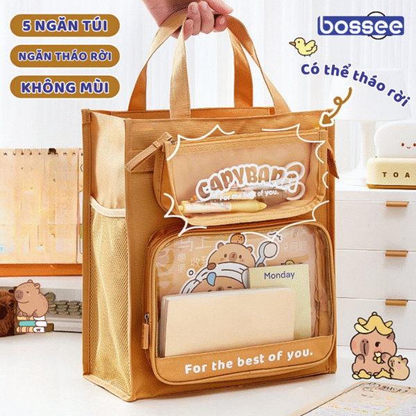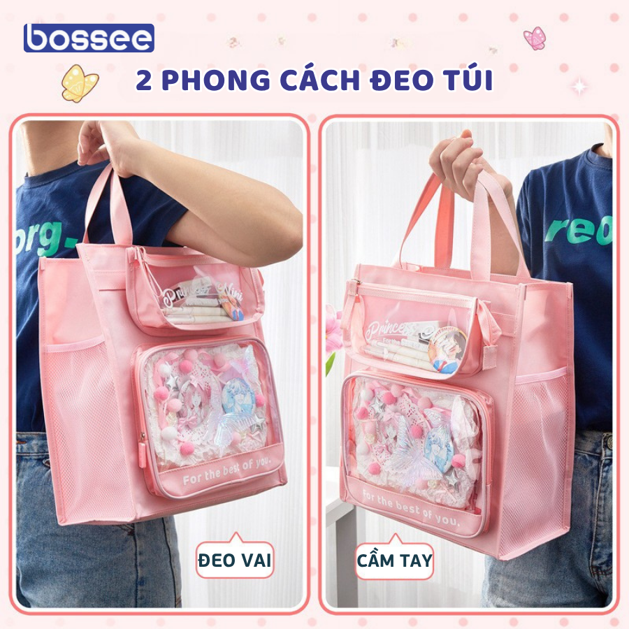 Đựng sách vở đa năng: Túi có thể chứa sách vở, tài liệu học tập, hoặc dùng làm túi đeo chéo trong các hoạt động hàng ngày.