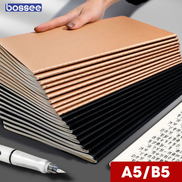 Set 5 Vở Ghi Chép A5/B5, Sổ Khâu Gáy, Sổ Bìa Kraft Nâu Đen Basic, Giấy Dặn Màu Tự Nhiên Chống Lóa, Thiết Kế Đơn Giản, Bền Bỉ, Phù Hợp Cho Học Sinh, Sinh Viên, Văn Phòng, Lưu Trữ Ý Tưởng, Sáng Tạo,