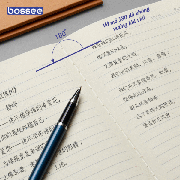Có thể mở rộng 180 độ, dễ dàng viết và tận dụng hết không gian trang giấy mà không bị vướng tay.