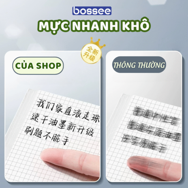 Mực khô nhanh, không lem: Mực gel được phân phối đều, khô nhanh chóng, giúp tránh tình trạng lem mực và giữ cho trang giấy luôn sạch sẽ.