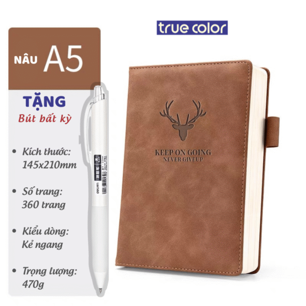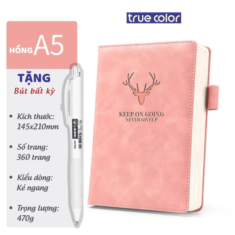 -Với 400 trang, sổ tay bìa da PU True Color có thể đồng hành cả năm, sử dụng thoải mái mà không lo hết