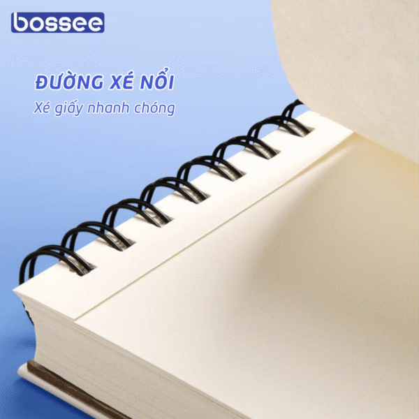• Gáy: Lò xo xoắn chắc chắn, dễ lật, có đường rãnh xé tiện lợi